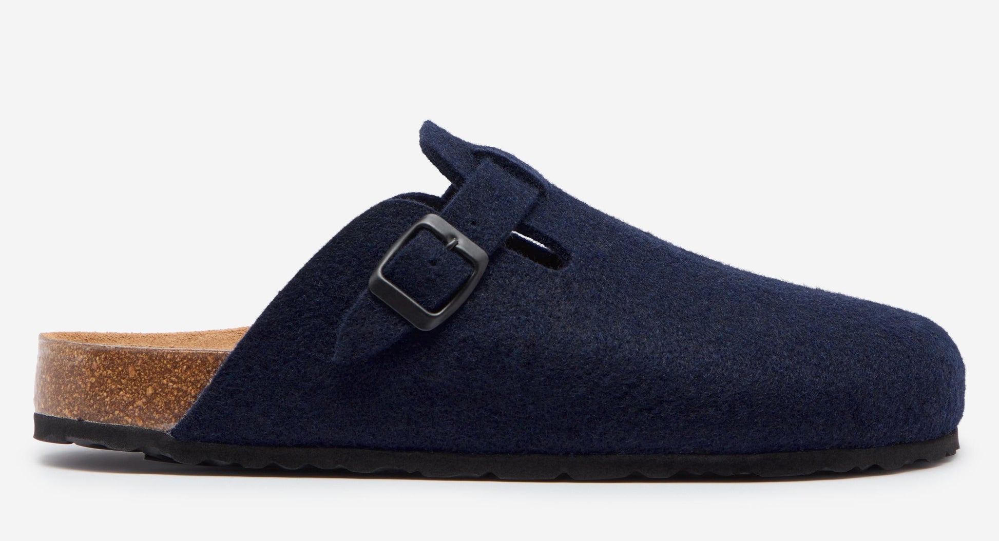 Our super comfy felt mule is from our specialist factory in Spain. The moulded cork footbed is topped with a soft suede insole with an additional layer of padding, supporting the arch of the foot and we’ve added a practical outdoor EVA sole. The felt upper is made from a navy marl wool and moulded around the last to maintain its shape. This is a great, practical, modern slipper that really wouldn’t look out of place at the local shop.